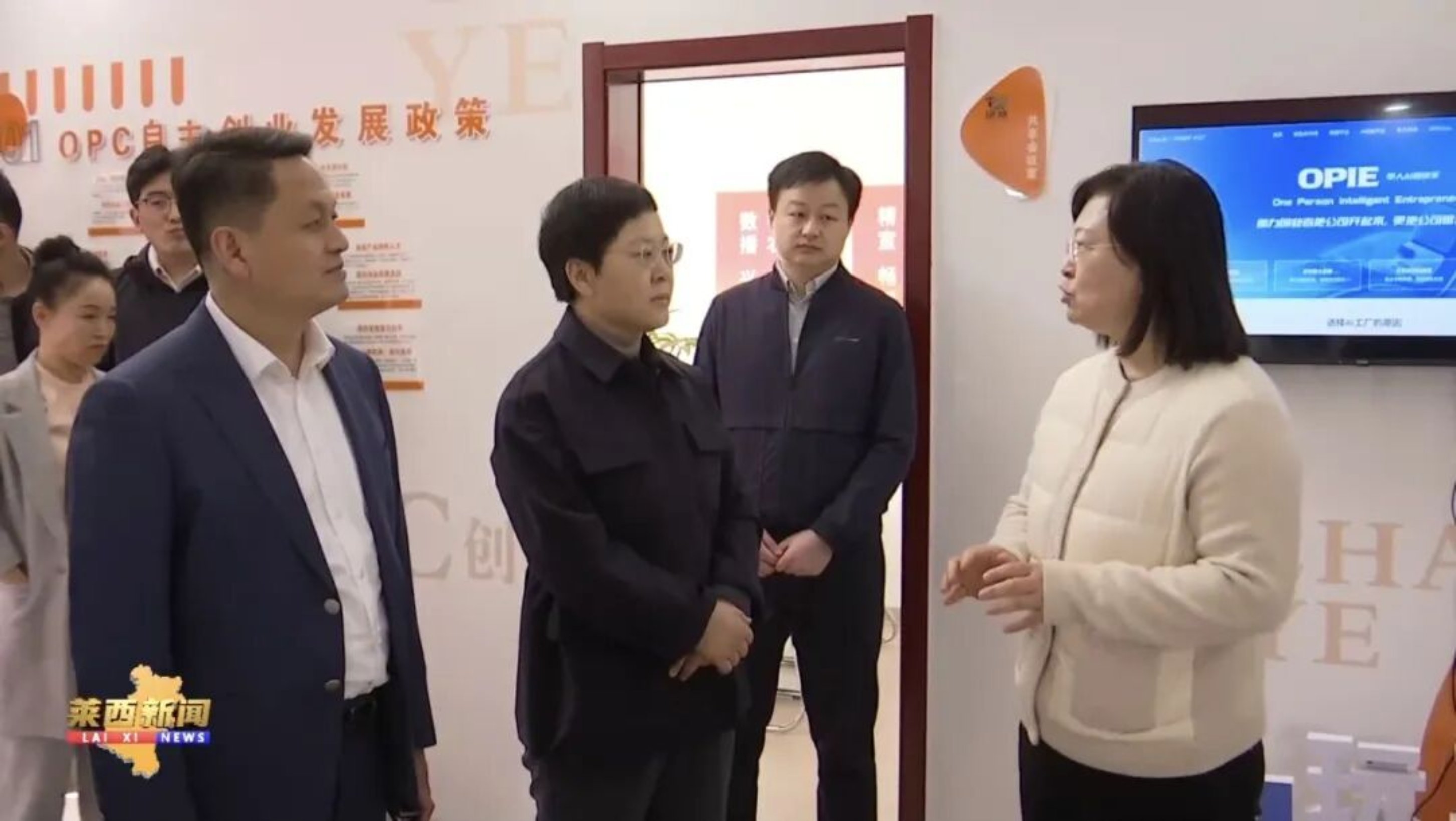 3月16日,莱西市委书记刘瑛到我校调研,实地察看校园环境、教学场地,重点调研青岛OPIE平台实训中心建设进展与大学生OPC孵化中心运营成效。学校董事长李京平陪同调研。