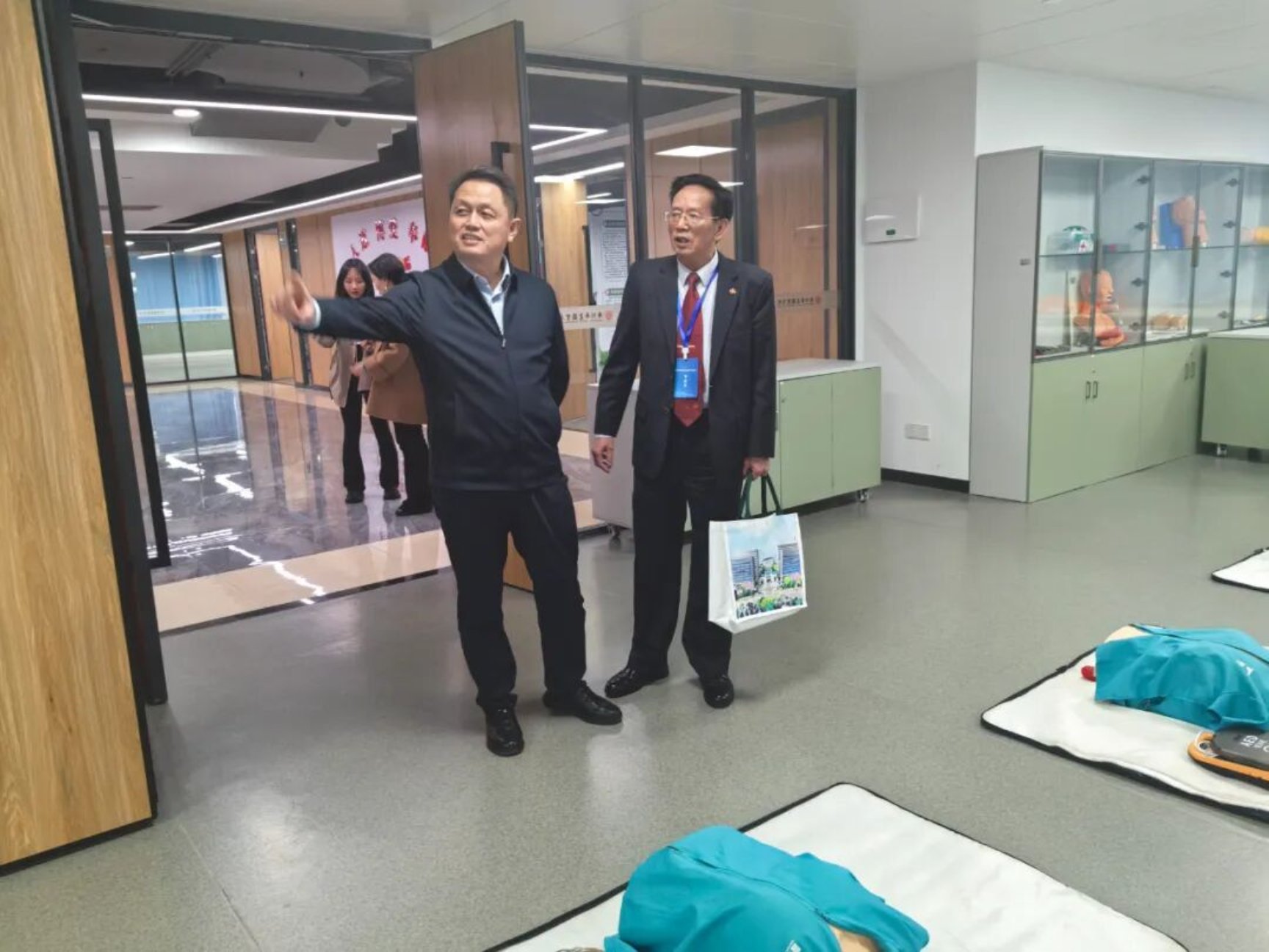 11月19日,李京平董事长一行前往广州华夏职业学院交流学习。在广州华夏职业学院董事长欧阳少林和华夏教育管理委员会执行主任、原校长邹建华的热情陪同下,李京平董事长实地参观了学校图书馆、华夏书院、急救基地等教学设施与配套场所,近距离感受该校的校园文化氛围与办学硬件条件。