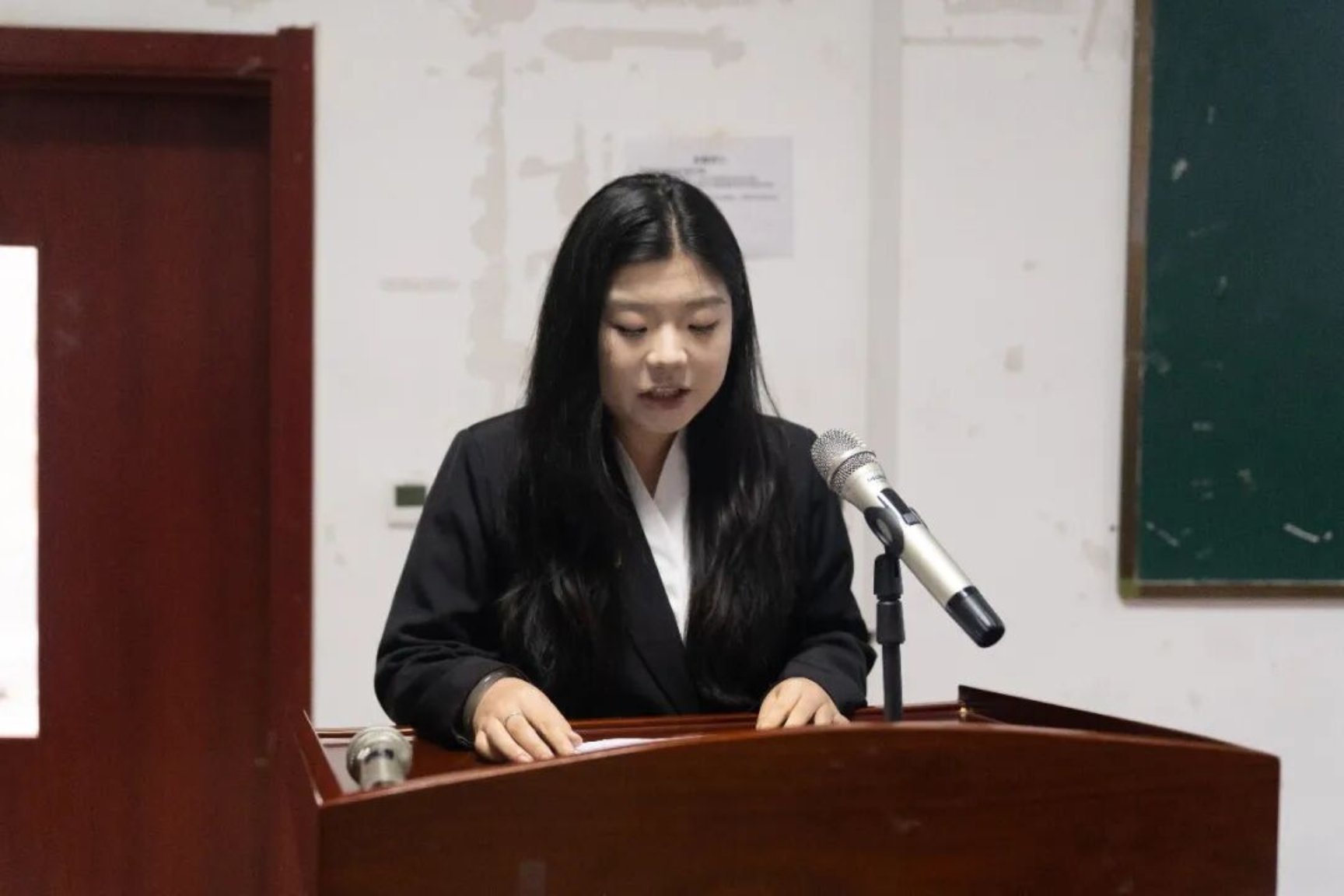 学生代表崔文倩发言,讲述自身阅读感悟,号召全体同学亲近书籍、勤于阅读,让书香陪伴青春、点亮梦想。
