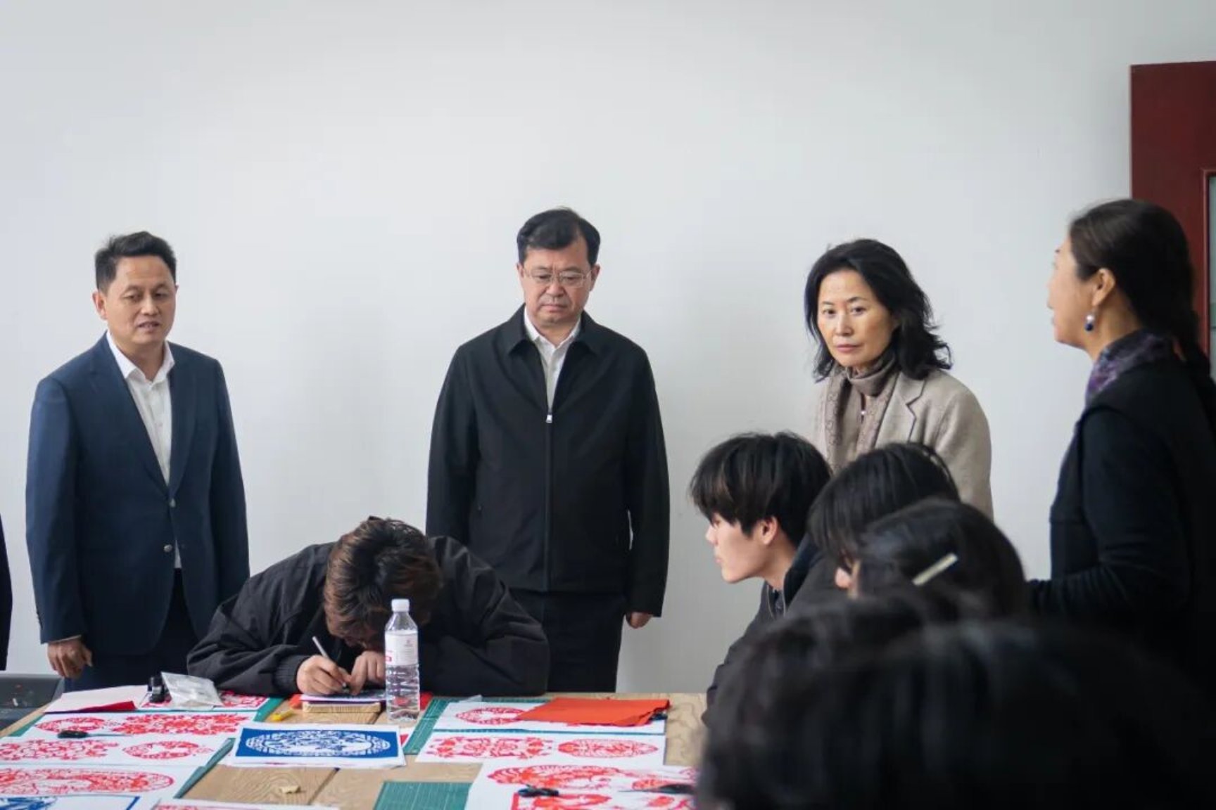 调研组沿校园主路参观校园,实地感受校园环境与育人氛围。在非遗传承与创新工作室(无党派人士王雪莲工作室),调研组深入了解非遗传承、艺术创新实践、特色美育教学等相关工作,对学校以非遗赋能文化育人、以特色助力内涵发展的做法给予充分肯定。