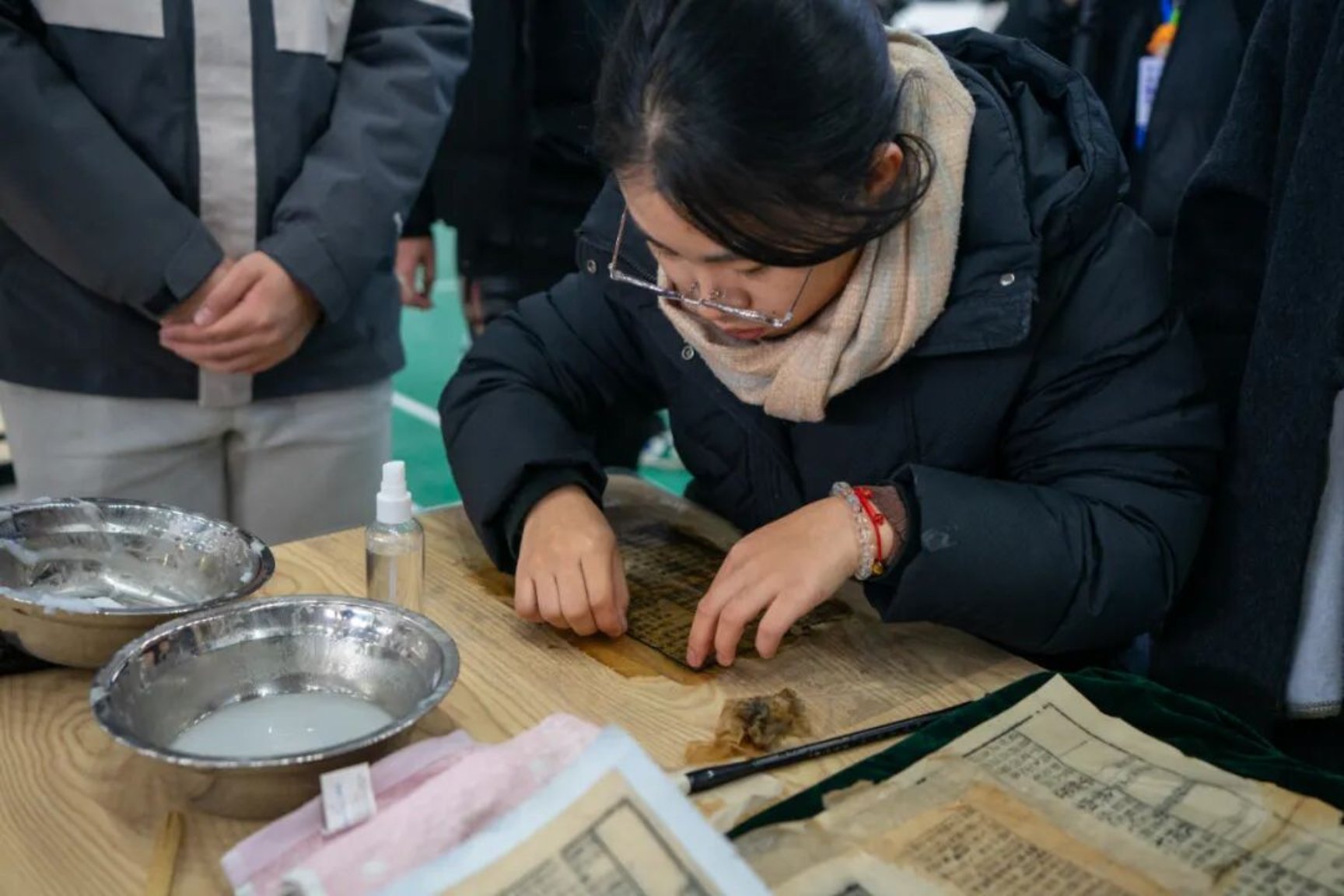 活动现场,12个特色展位依次排开,自贡扎染、凤翔木版年画、莱西木偶、马氏巧饼、沽河剪纸、木雕技艺、葫芦雕刻、传拓技艺、制香技艺、文物修复、漆器制作技艺、封氏玉雕等非遗项目集中展示,丝绸之路长卷、丝路赋等特色作品更是吸引了大批观众驻足观赏,本次展演累计展出的1000余件非遗作品,全方位展现了中华非遗技艺的精湛与厚重。
