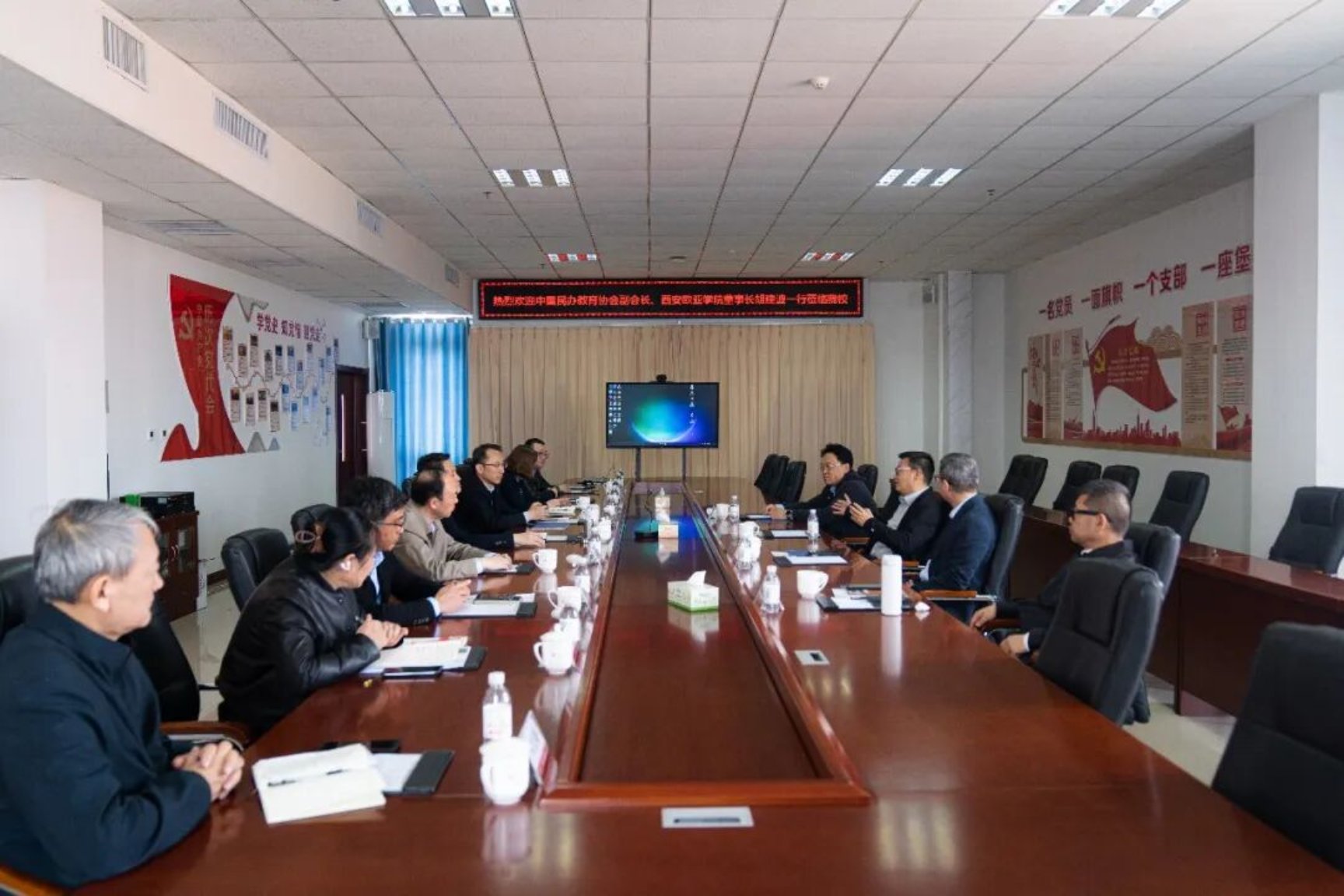 李京平代表学校对胡建波一行表示热烈欢迎,他表示,胡建波董事长深耕民办教育四十余载,为中国民办教育改革创新与高质量发展作出了突出贡献。西安欧亚学院是我国民办教育领域的标杆旗帜,其“长期主义、教育向善”的办学理念与数据驱动的精细化管理经验,为我校发展提供了宝贵借鉴。他指出,此次交流是两校深化合作、互学互鉴的重要契机,我校将认真吸收转化先进经验,加快推进校园品质提升、财务体系优化与产教融合创新,全力打造特色鲜明、质量过硬的民办高职院校品牌。