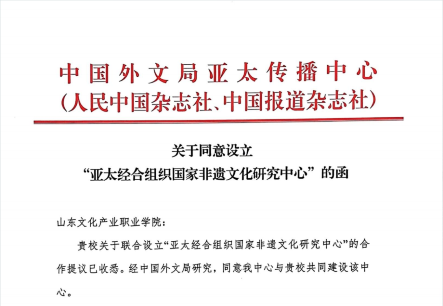 为落实亚太经合组织(APEC)文化合作共识,推动亚太地区非物质文化遗产的保护、传承与创新发展,由中国外文局亚太传播中心与山东文化产业职业学院共同建设的“亚太经合组织国家非遗文化研究中心”将于2025年11月28日上午在山东文化产业职业学院正式揭牌成立。
