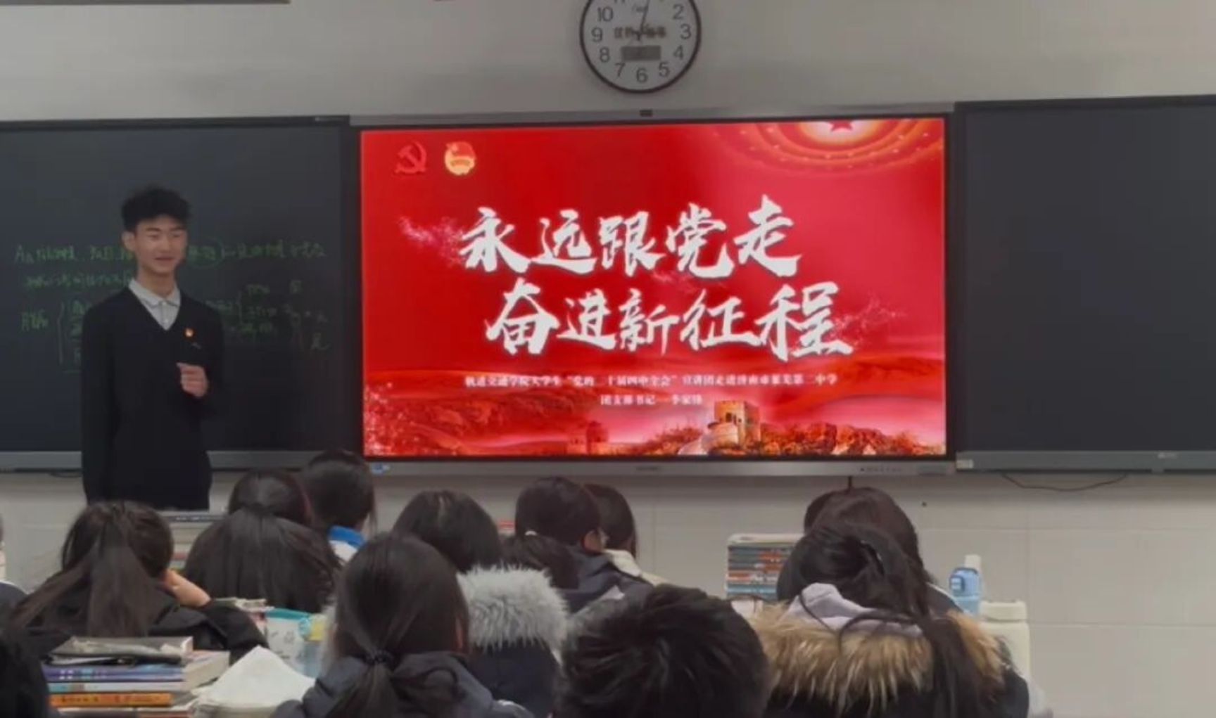 与此同时,李家锋回到母校,结合莱芜二中70周年校庆,为2026级新生开展二十届四中全会精神宣讲。他以校史为镜,将全会精神与母校育人初心相结合,引导学弟学妹们将个人理想融入国家发展大局,在青春赛道上勇担使命,展现了青年学子的家国情怀。