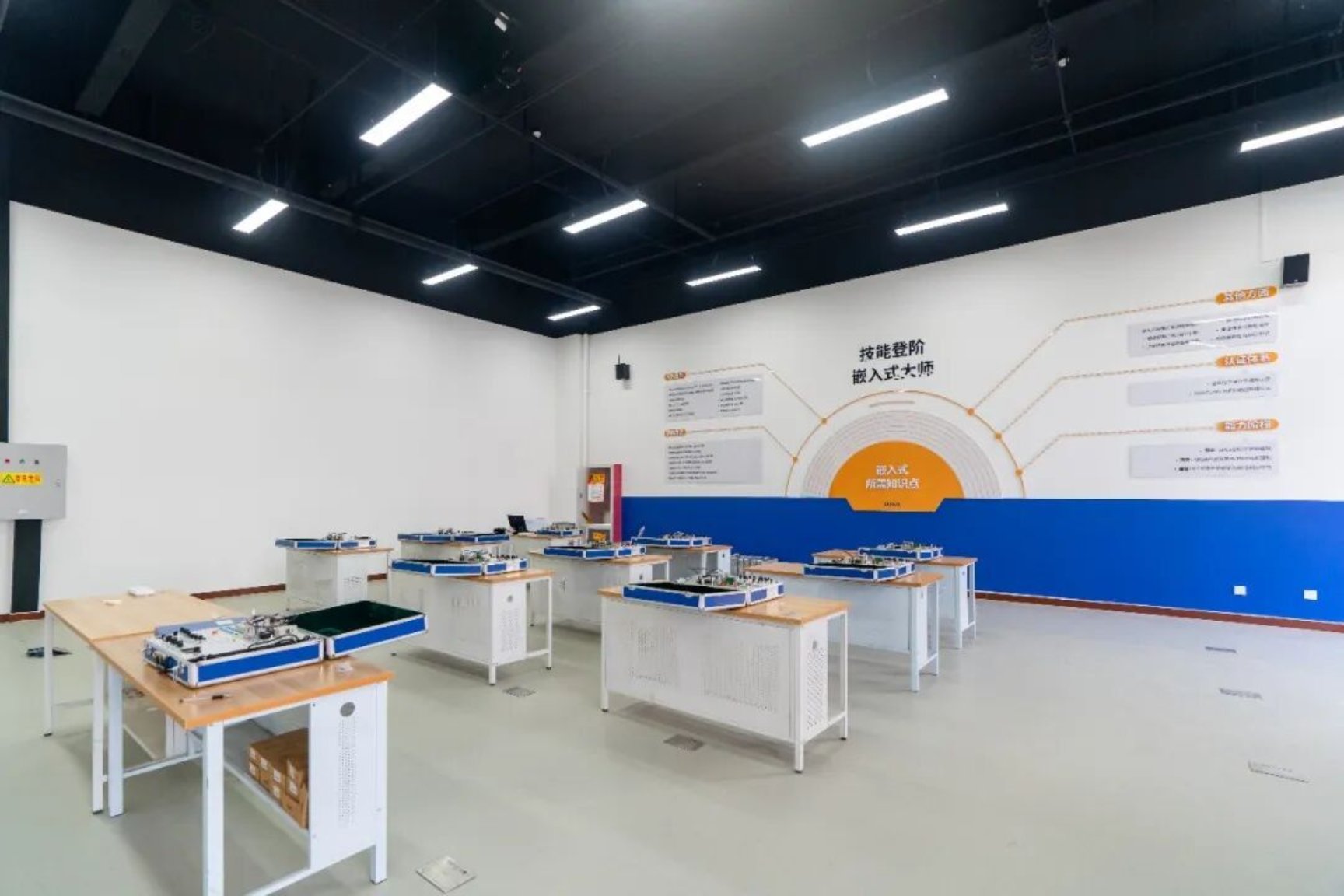 实训室分两大功能区,设备专业齐全,覆盖从基础学习到实操进阶的全流程培育。