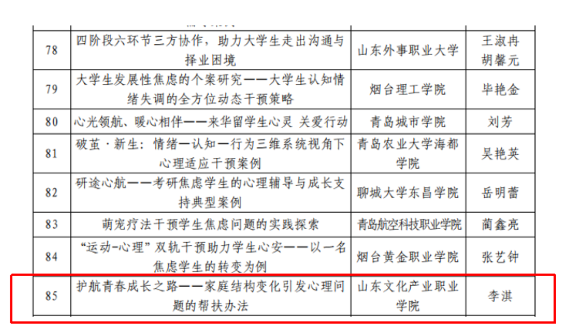 近日,山东省教育厅公布了2025年“山东省学生心理健康宣传教育月”系列活动获奖名单。我校辅导员李淇报送的《护航青春成长之路——家庭结构变化引发心理问题的帮扶办法》成功获评“全省学生心理健康教育指导典型案例”。