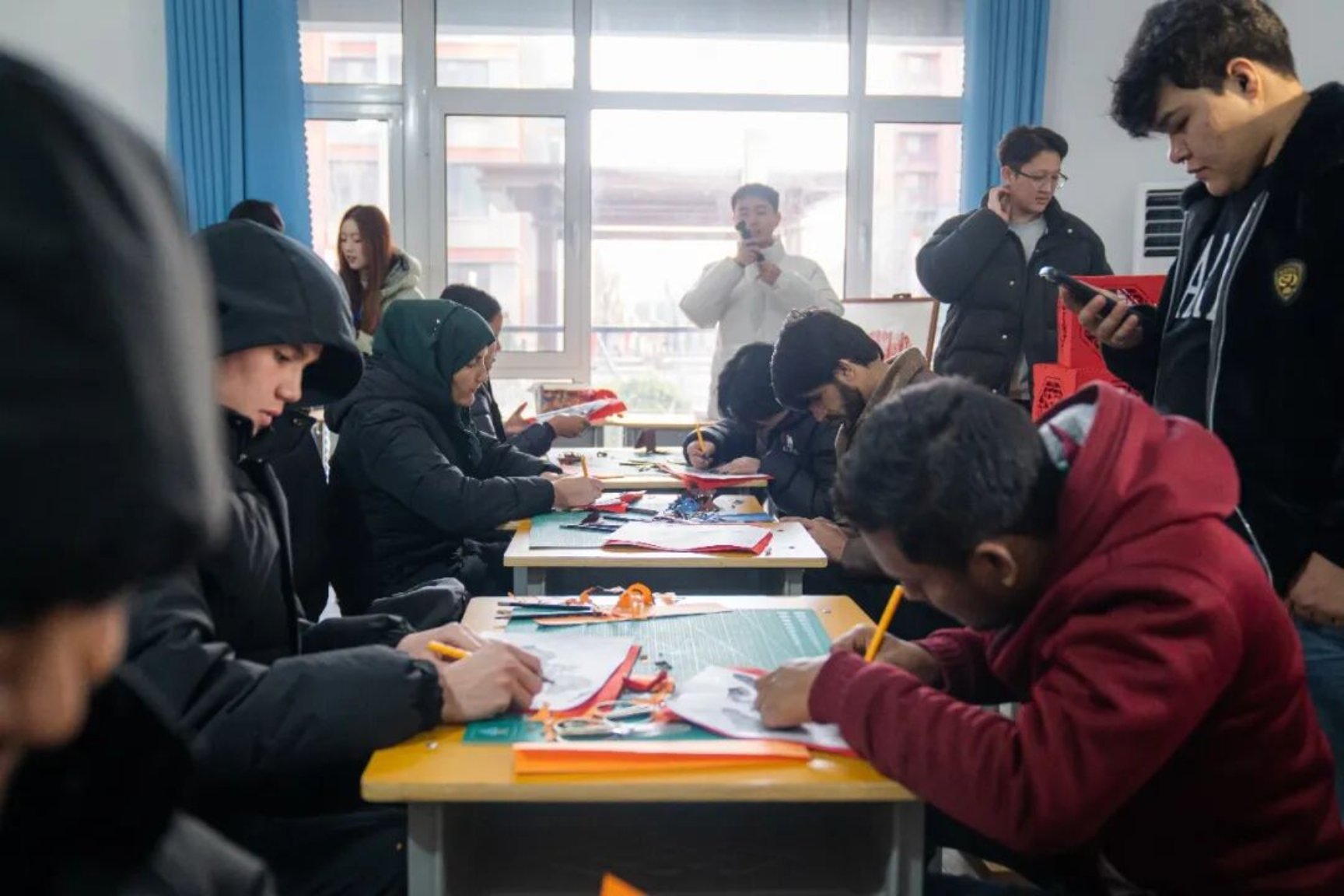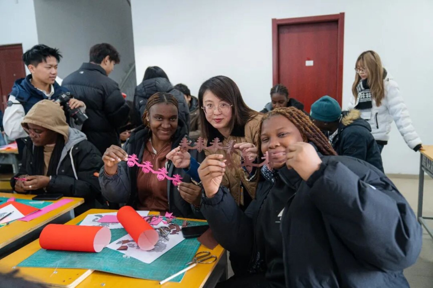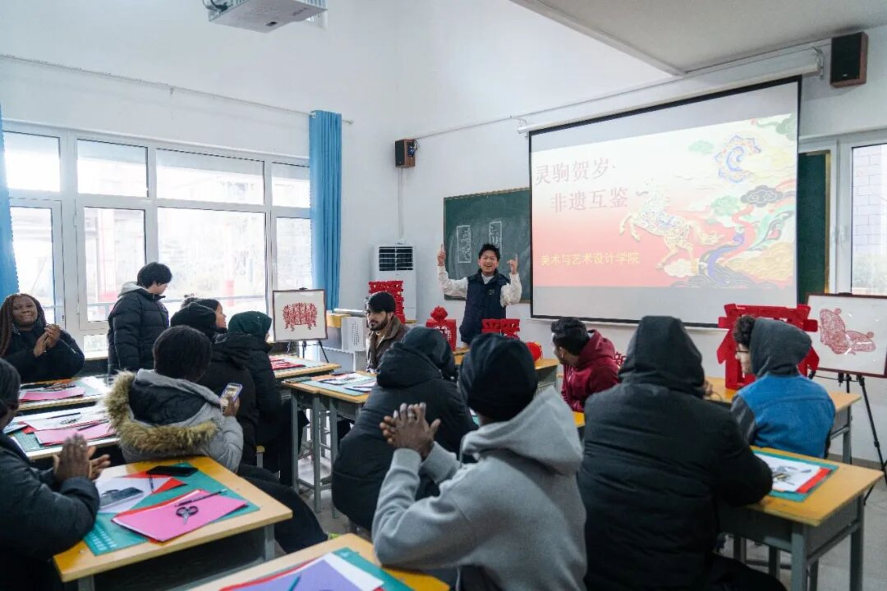 红纸裁春意,指尖剪吉祥。年味渐浓,一场以马年新春为主题的非遗剪纸体验活动——“指尖非遗・跨越语言的文化对话——马年新春剪纸文化共赏体验日”,在山东文化产业职业学院温情启幕。多国留学生与中国师生齐聚一堂,以剪刀为笔、红纸为笺,在非遗传承人的指引下,解锁剪纸艺术的独特魅力,共赴一场跨越国界的文化之约。