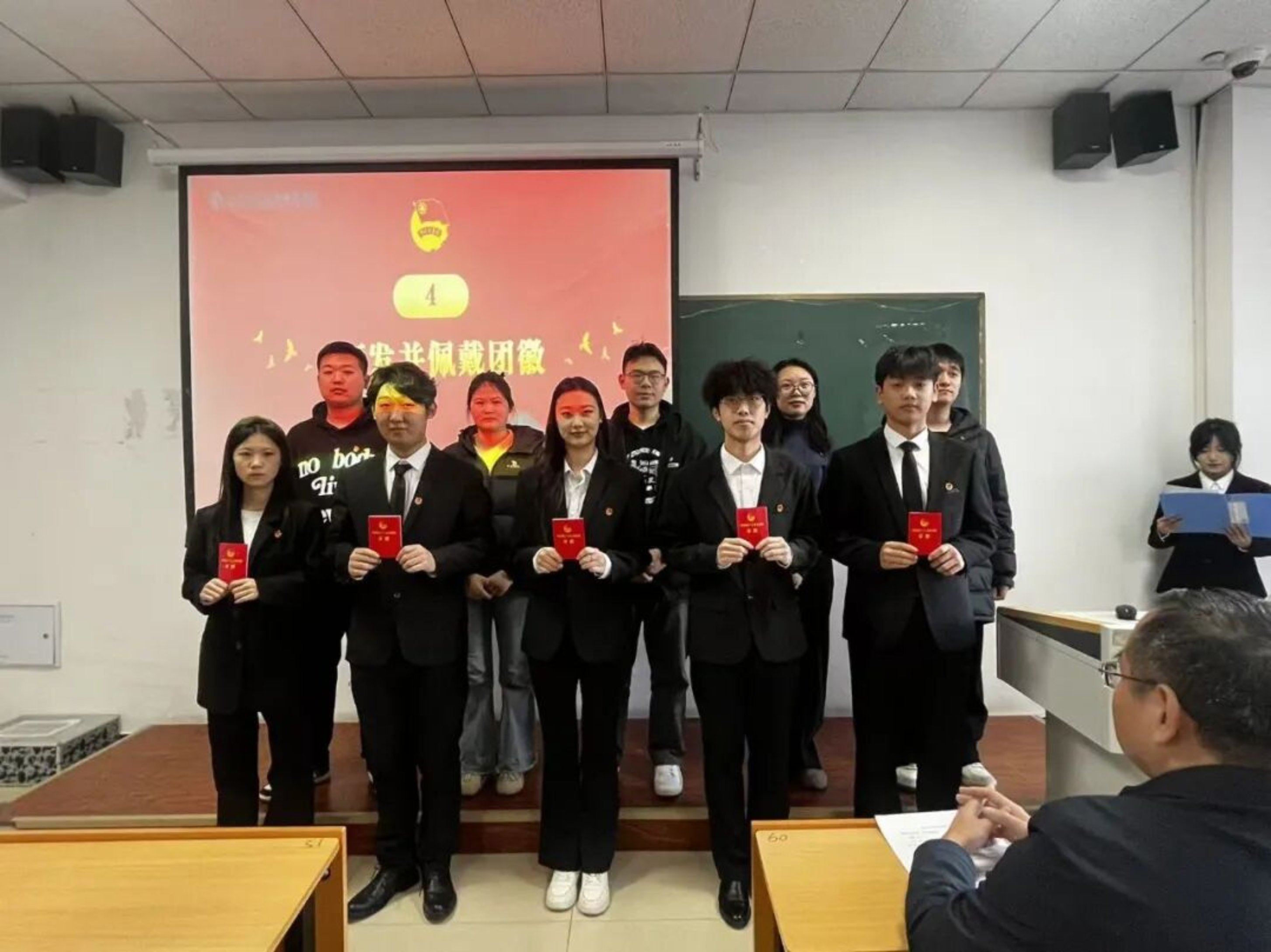 学院领导、老师以及老团员代表为新团员佩戴象征光荣与责任的团徽,并颁发团章。当金色团徽佩戴于左胸,鲜红团章握在手中,新团员们清晰感知到身份的转变与责任的重量,这不仅是荣誉的象征,更是使命的召唤,激励他们以实际行动践行团员担当。