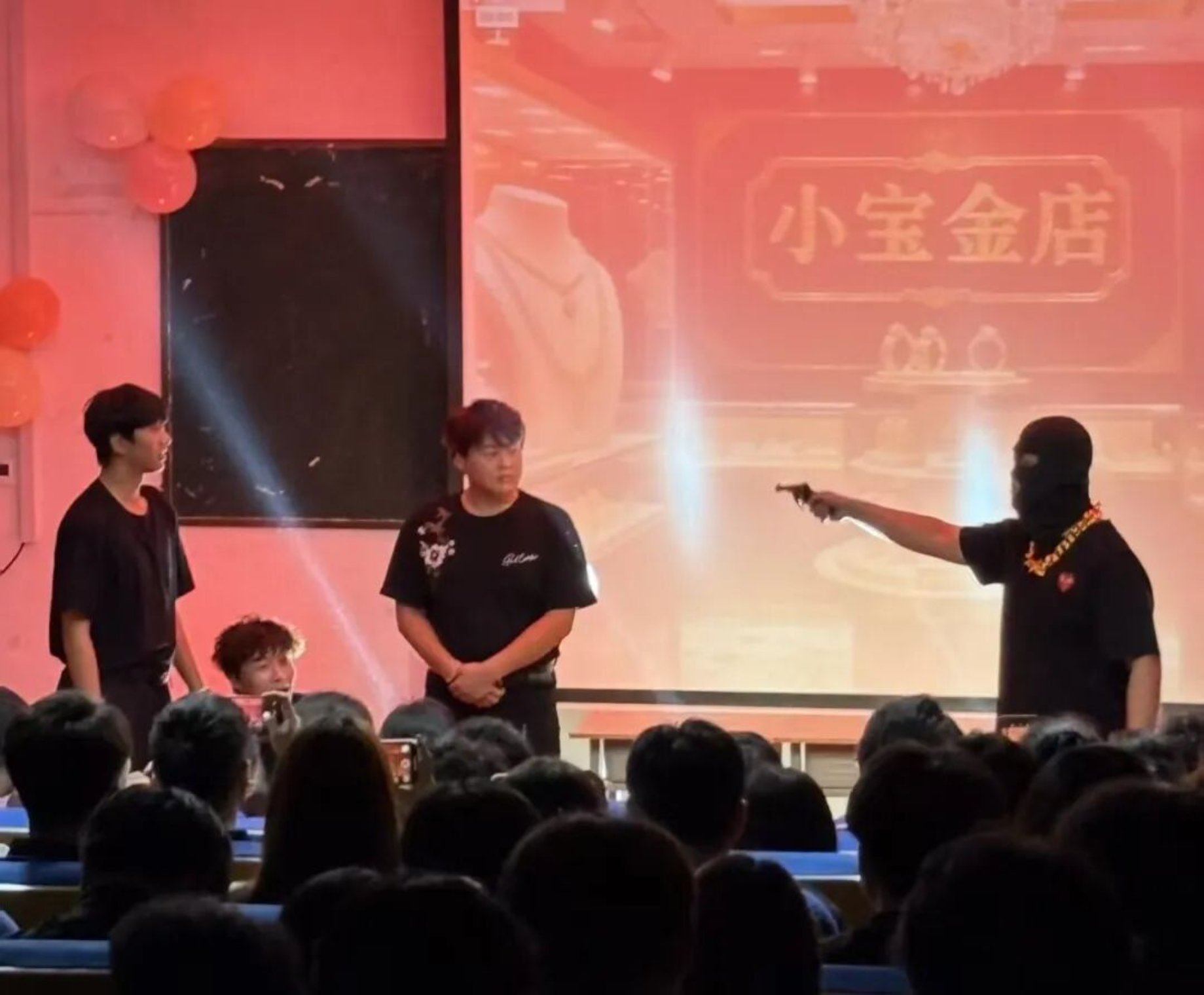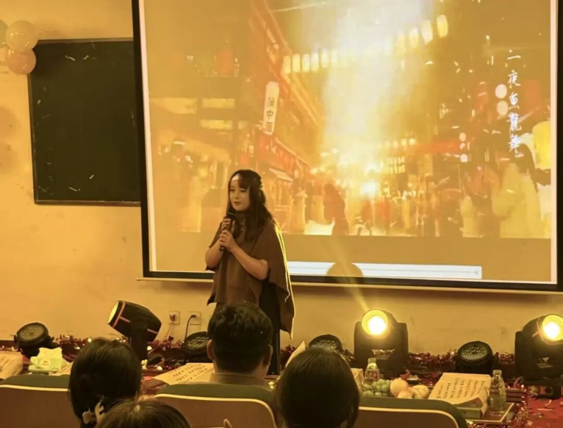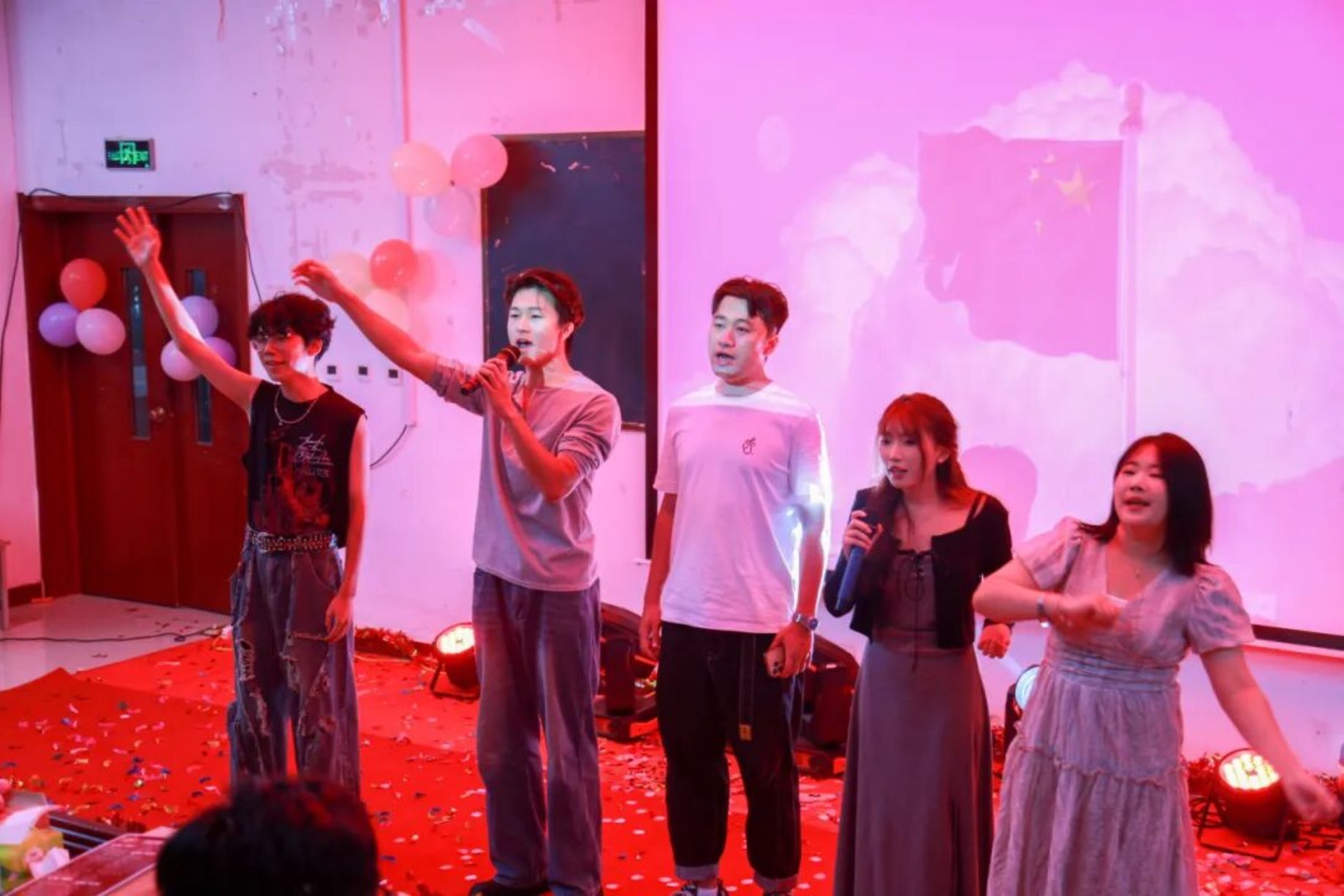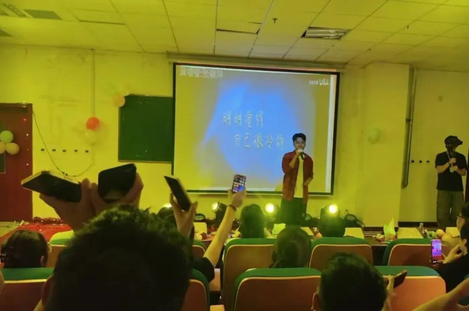 晚上六点半,教室内早已座无虚席。舞台四周点缀着闪烁的“星辰”,营造出浪漫温馨的中秋氛围。在观众的热烈期待中,主持人们闪亮登场,宣布晚会正式开始。