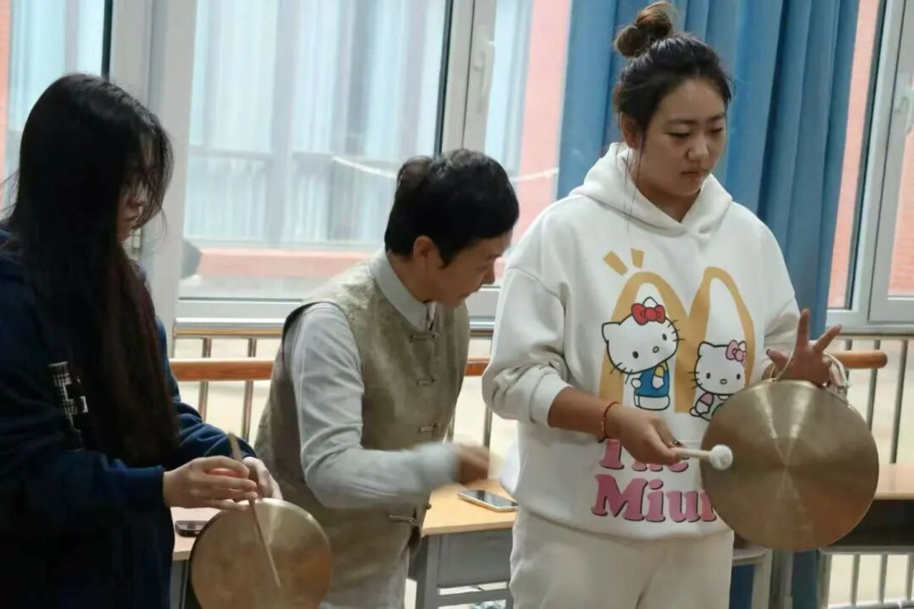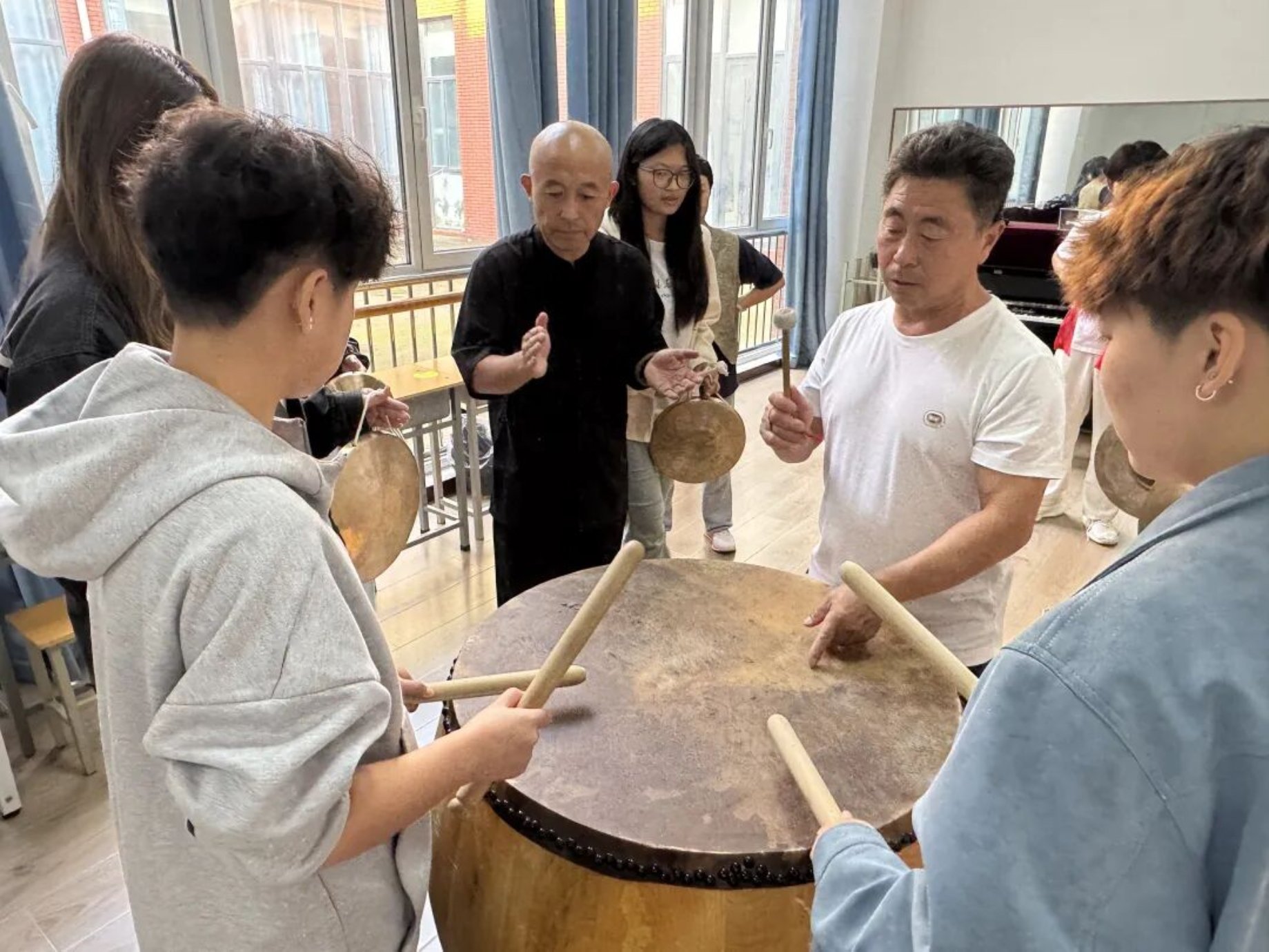 乐队伴奏是秧歌的灵魂,大鼓、锣、钹等交织在一起。同学们认真聆听老师的指导,反复练习演奏技巧,从生疏到熟练,每一次进步都饱含着对传统乐器的热爱。