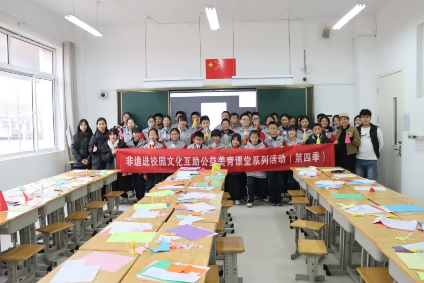 近日,一堂别开生面的“文化互助·非遗传承”公益美育课堂在莱西市院上镇中心中学热情展开。本次活动由山东文化产业职业学院主办,美术与艺术设计学院无党派人士王雪莲工作室承办,将源自北方民族的珍贵非物质文化遗产——达斡尔族“哈尼卡”剪纸艺术带进校园,为孩子们开启了一段融合民族智慧与美学启蒙的奇妙旅程。