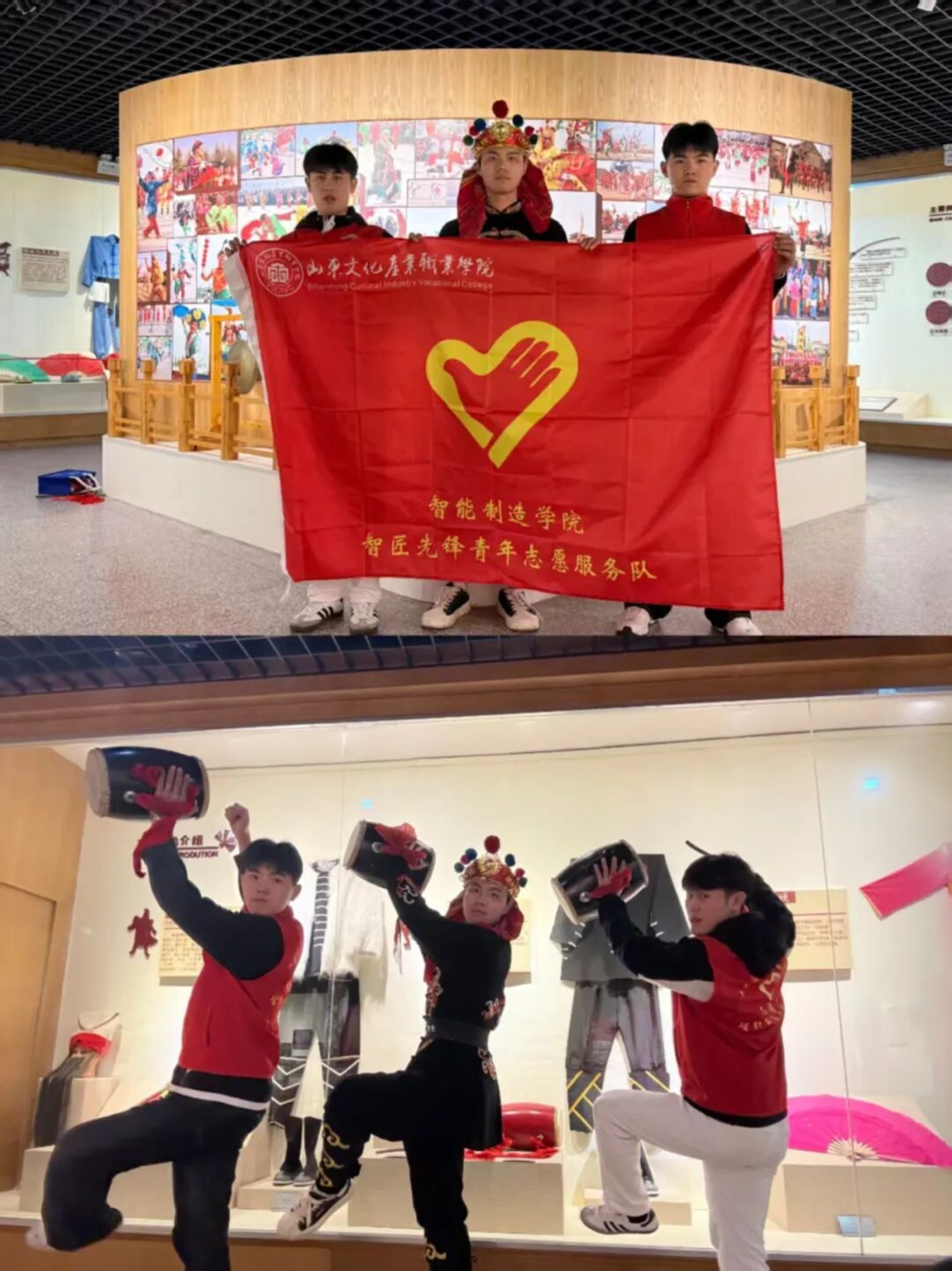 郭媛老师带领团队走进海阳秧歌,传承非遗文化。实践服务团成员在老师带领下走进海阳市博物馆秧歌展厅,通过老照片、服饰道具与影像资料,了解海阳秧歌从明代至今的发展脉络,学习各类角色与表演形式的文化内涵。随后大家在排练场跟随非遗传承人沉浸式学习秧歌技艺,认真练习步伐、鼓点与花鼓动作,并与艺术团成员共同完成片段排练,拍摄视频素材用于文化传播。此次实践让同学们真正走近非遗,深刻感受传统文化的独特魅力,也更加坚定了传承弘扬优秀民俗文化的决心,未来将以青春力量让古老秧歌在新时代焕发新活力。
