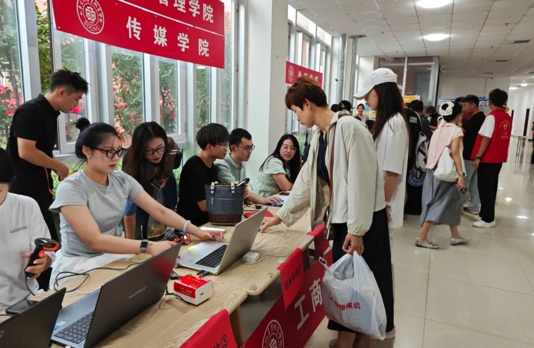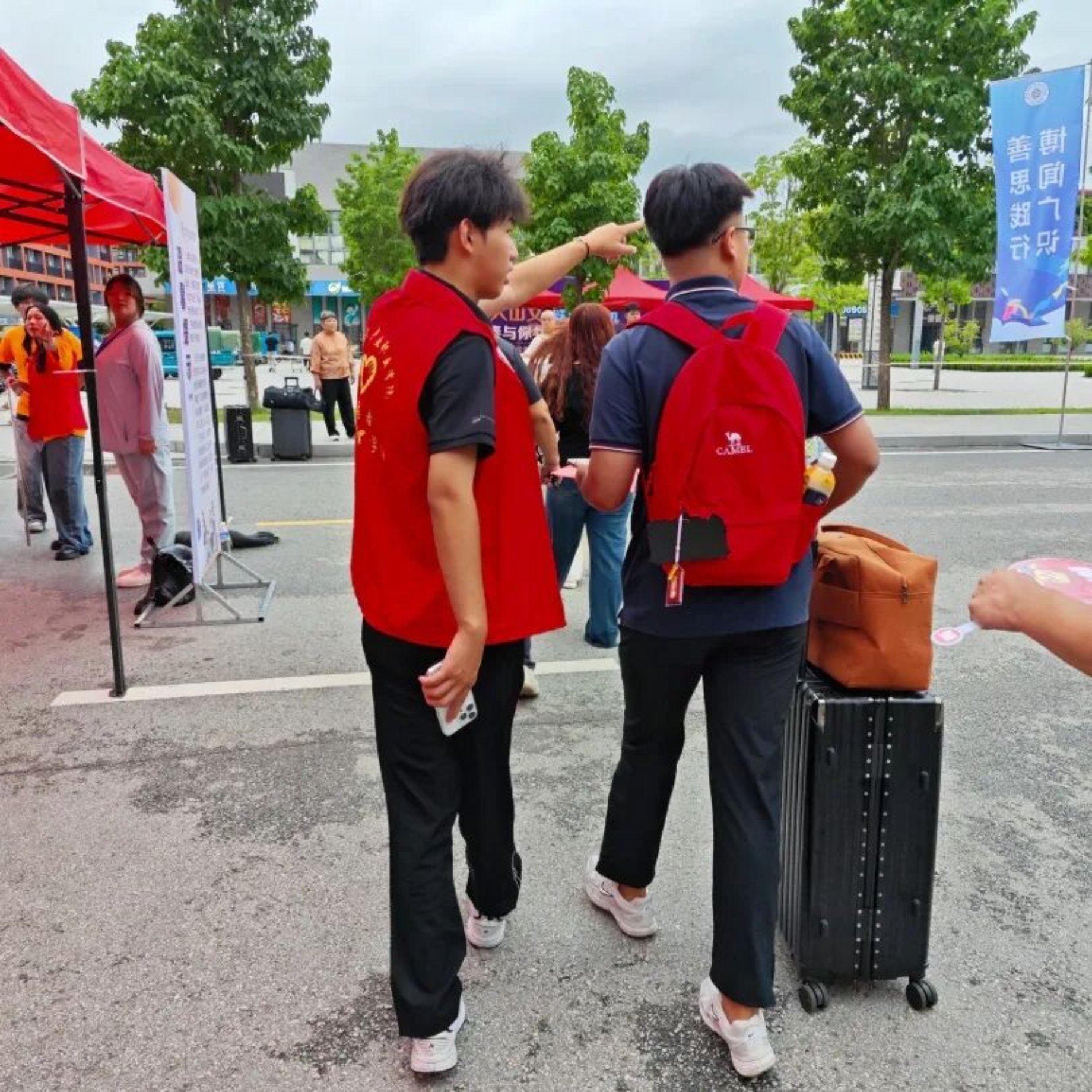早上6:30,工商管理学院的志愿者们已经准备就绪,他们身着统一的红马甲,在报到点、校门口、宿舍楼下,帮忙搬运行李、耐心指引报到流程、细致解答各类疑问……他们的身影穿梭在校园各处,用真诚与汗水为同学们搭建起“迎新暖心桥”。