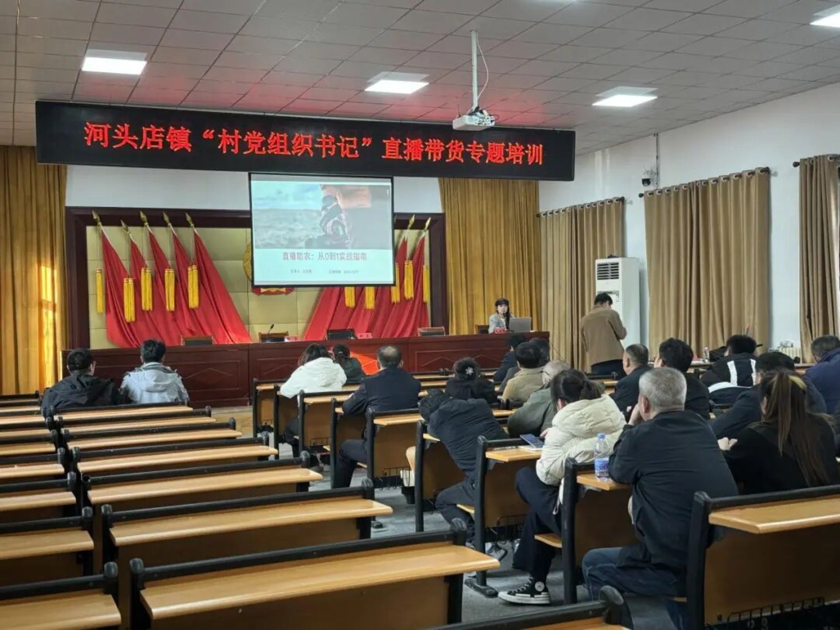 本次培训由王亚男老师担任主讲,全镇各村党组织书记齐聚一堂,共同学习、探讨如何利用新媒介、新渠道为本土农产品拓宽销路,为乡村振兴注入“数字动能”。