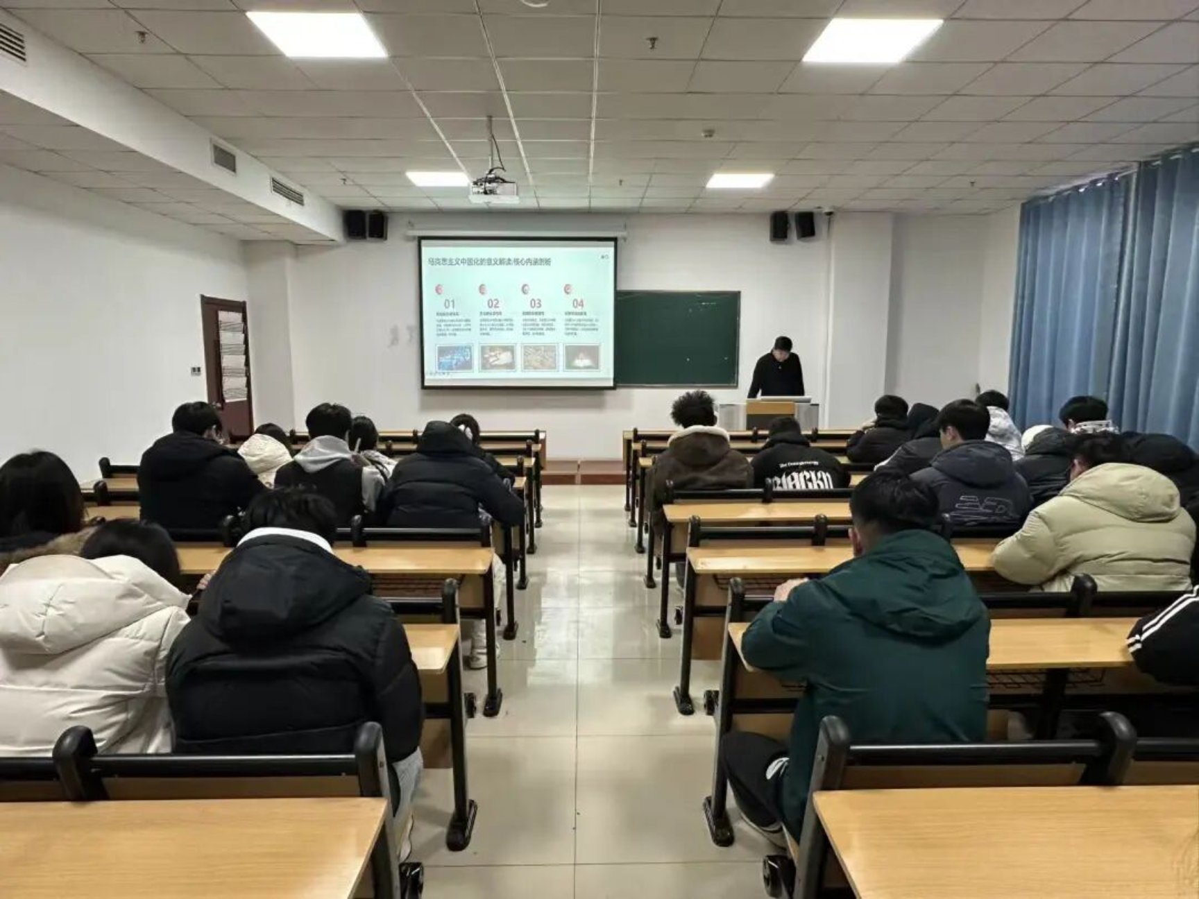于建伟老师深入阐释了马克思主义基本原理与中国具体实际相结合的光辉历程,系统梳理了毛泽东思想、邓小平理论、“三个代表”重要思想、科学发展观以及新时代中国特色社会主义思想这一脉相承又与时俱进的理论体系。通过生动的案例与详实的史料,强调了这一系列理论成果作为我们党和国家事业不断从胜利走向新的胜利的强大思想武器与科学行动指南的重要意义,并鼓励同学们要深刻领会其核心要义与实践要求,自觉用以武装头脑、指导实践。